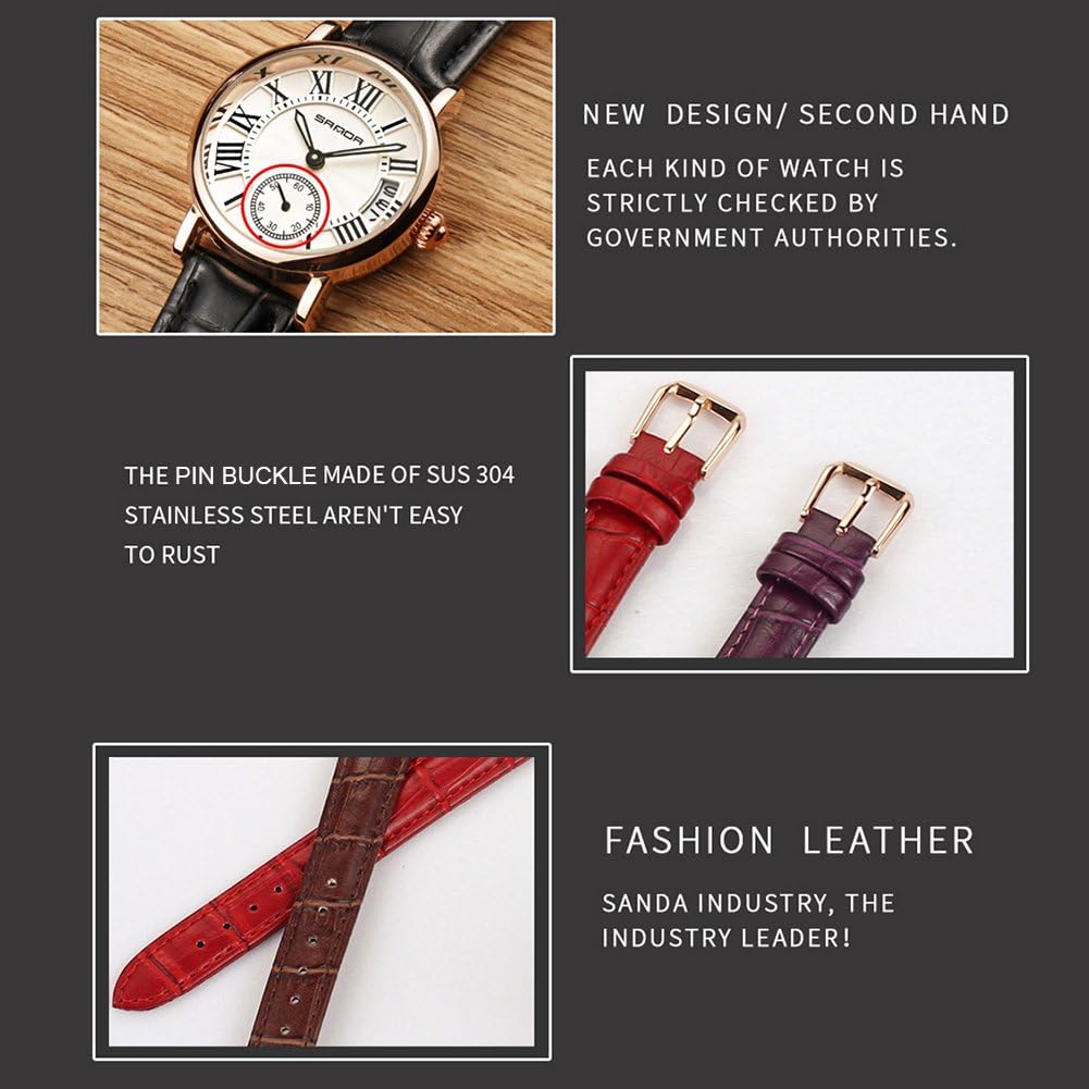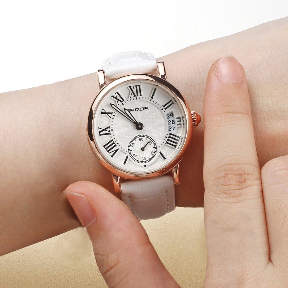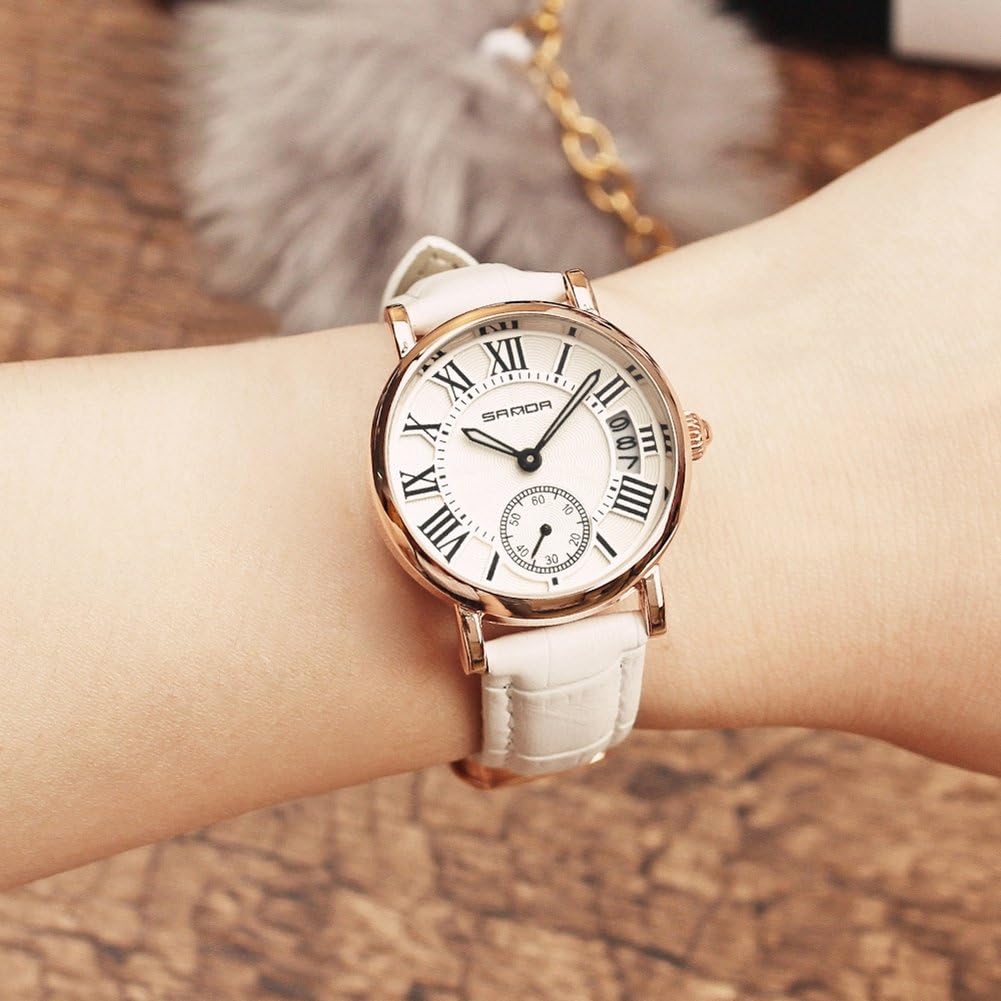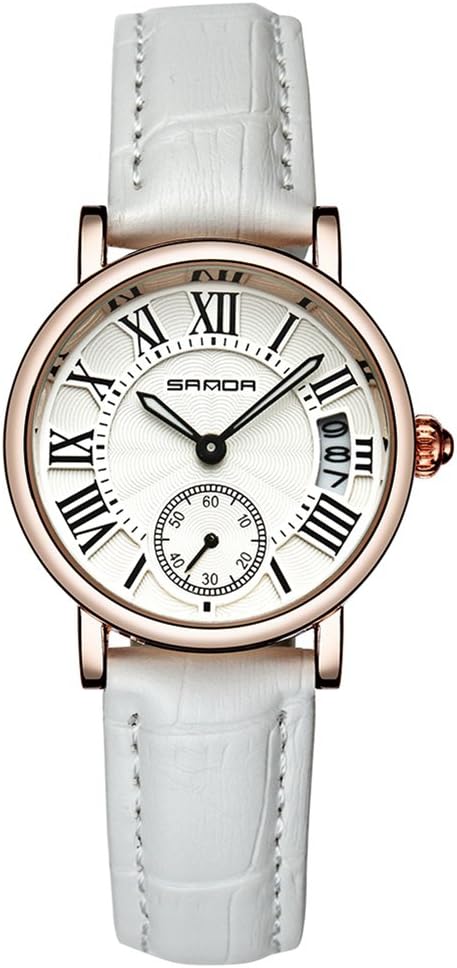 Filfeel Women’s Watch, Classic Analog Quartz Wristwatch, Leather Strap and Date (White)