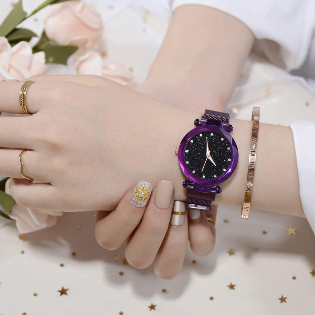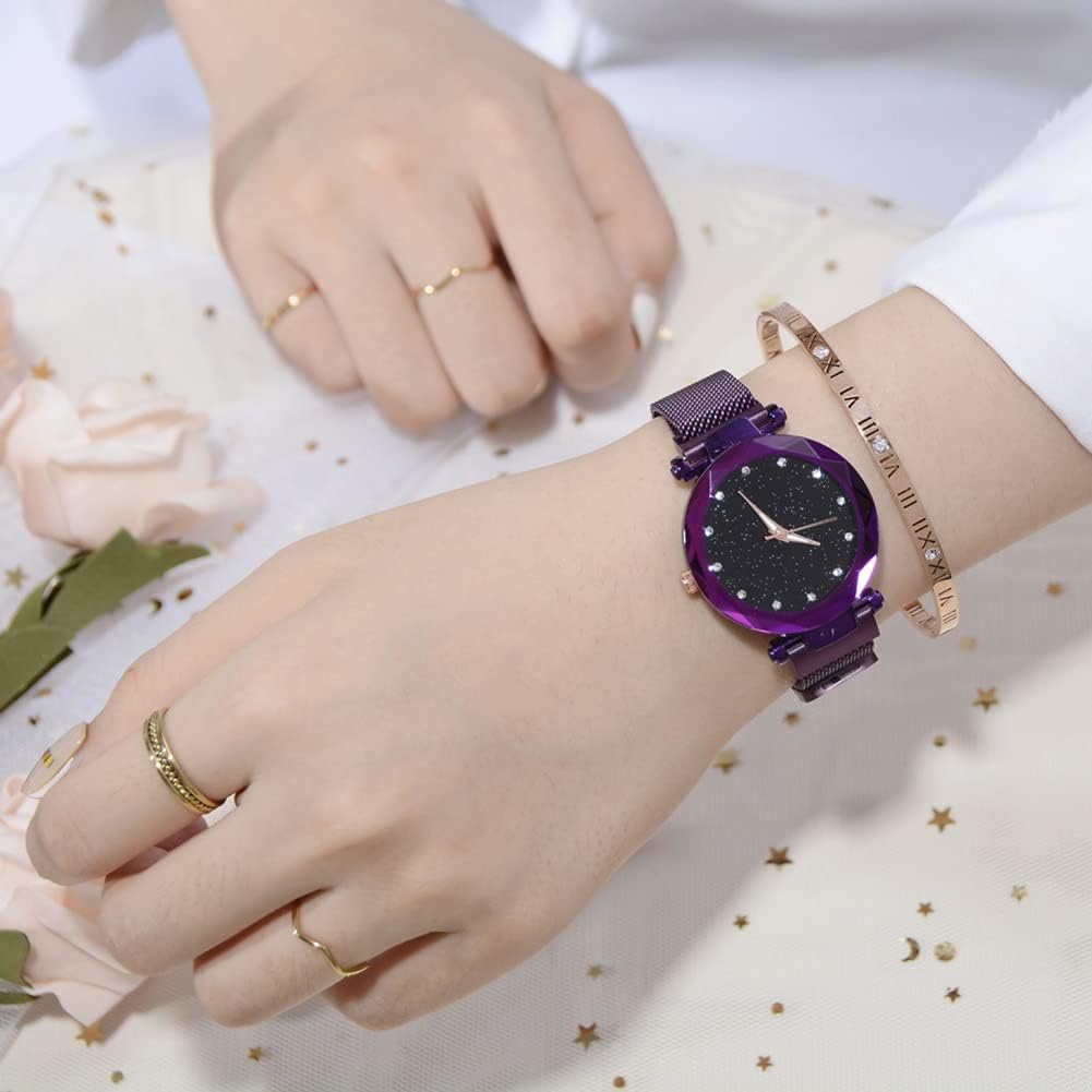 - Design: Women Watch with a starry sky dial, the shimmer powder in the dial will change colors under different light and scenery, just like twinkle little stars, romance, fashion, simplicity