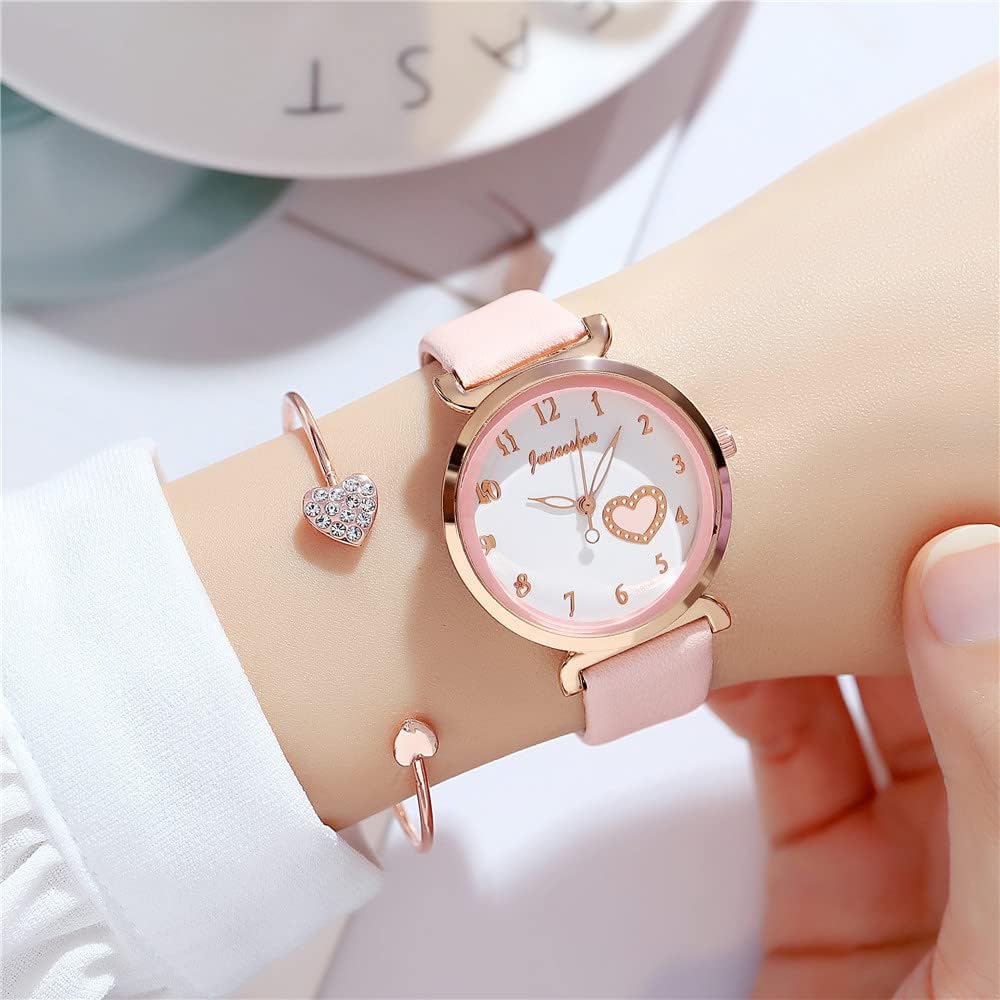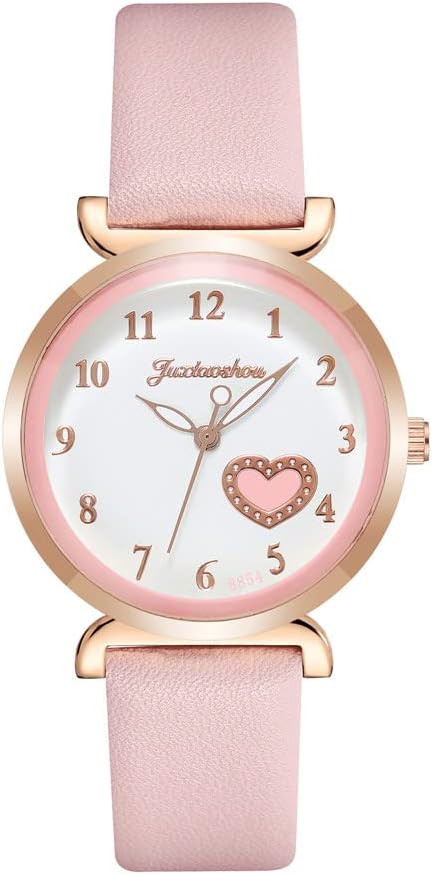 Women’s Romantic Heart Dial Quartz Watch, Women’s Leather Analog Wristwatch, Ladies’ Watch, Pink